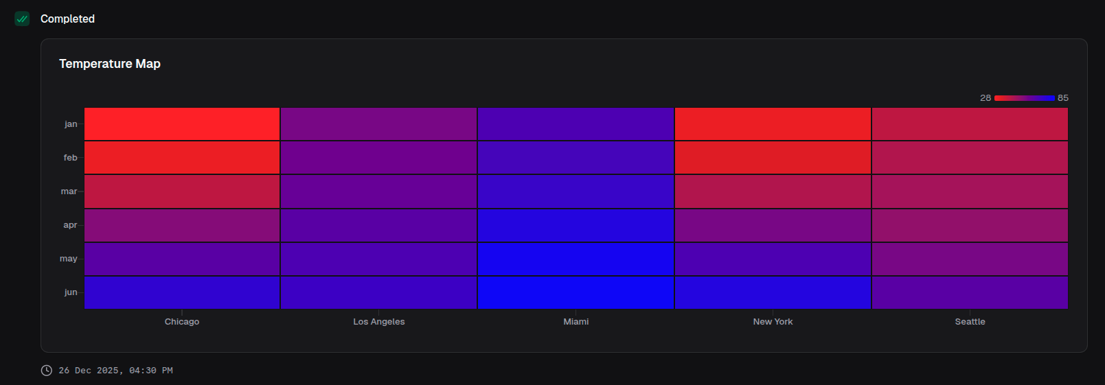 Returns a HeatmapChartOutput object that can be returned from a handler or passed to io.message().