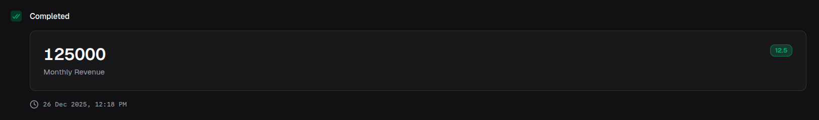 | chart | Embedded chart for additional context | KPICardChart | No | undefined |