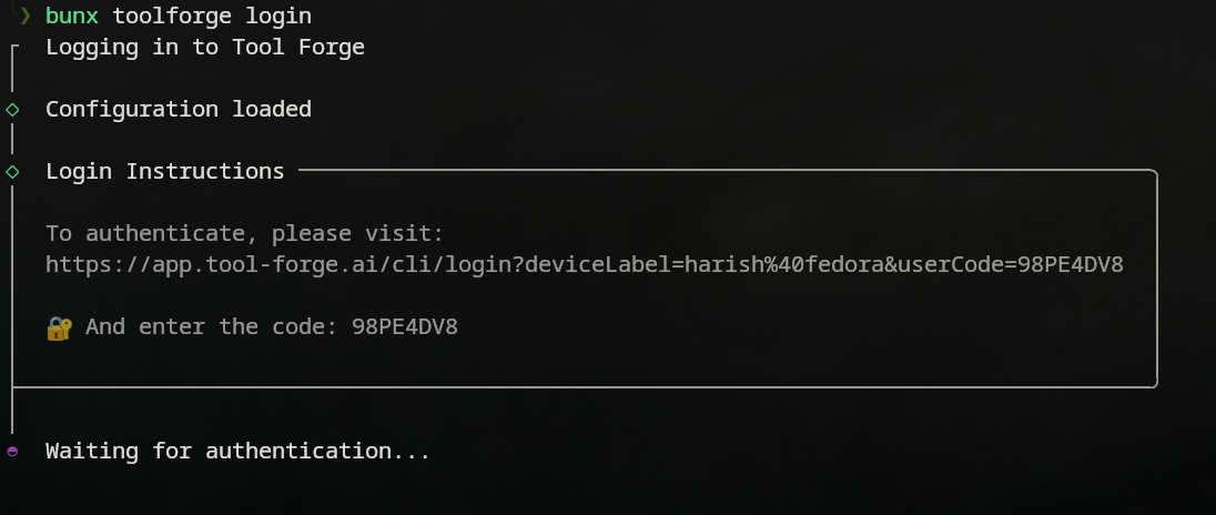 This guide walks you through deploying your Tool Forge project to production using the CLI.