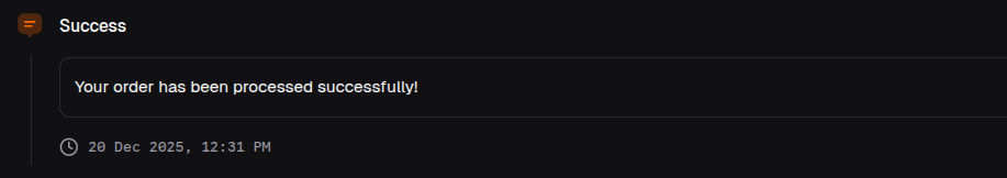 Displays a message to the user. Supports simple text, numbers, objects, arrays, or rich block content.